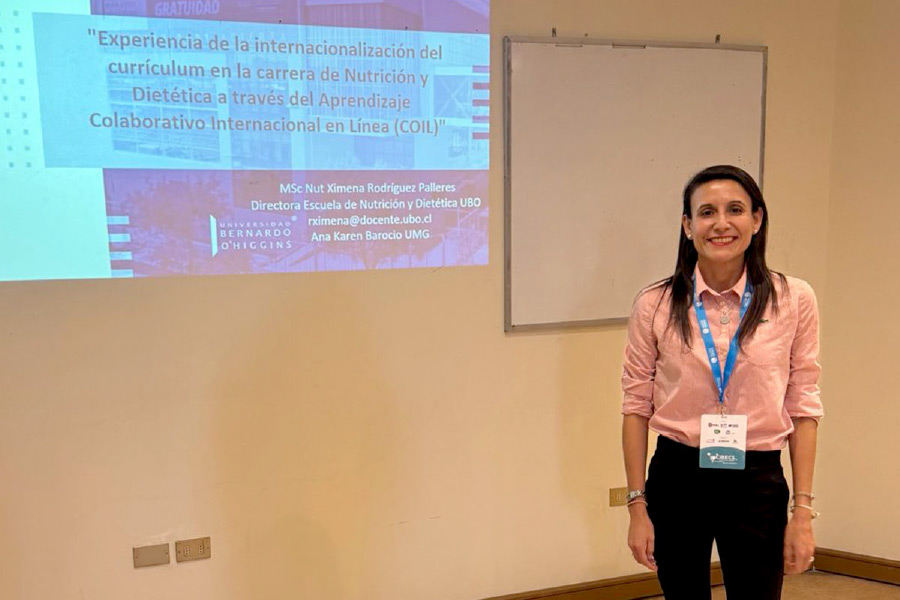 La Escuela de Nutrición y Dietética de la Universidad Bernardo O’Higgins (UBO) tuvo una destacada participación en el Congreso Iberoamericano de Educación en Ciencias de la Salud (CIBECS), realizado en la Universidad de Concepción. En este encuentro, presentó la investigación titulada «Experiencia de la internacionalización del currículum en la carrera de Nutrición y Dietética a través del Aprendizaje Colaborativo Internacional en Línea (COIL)». Este innovador proyecto fue desarrollado en colaboración con la Universidad Marista de Guadalajara, México.