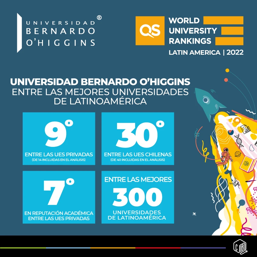 El ranking QS Latinoamérica 2022, situó a la Universidad Bernardo O’Higgins como la número 9º entre las universidades privadas y 30º entre a nivel nacional, en donde se consideraron 14 y 40 instituciones respectivamente para dicho análisis.