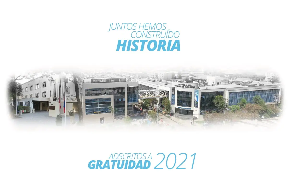 Gracias al trabajo sistemático y coherente realizado en cada una de las dimensiones que componen la institución y que se enmarca en el constante compromiso con la búsqueda de la excelencia en la Educación Superior, la Universidad Bernardo O’Higgins informa a toda la comunidad, que adscribirá a la Gratuidad 2021.